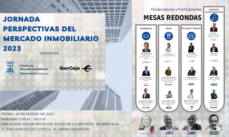 El viernes 24 de marzo se celebra la primera edición de la jornada “PERSPECTIVAS DEL MERCADO INMOBILIARIO 2023”, organizada por la Cátedra en Mercado Inmobiliario de la Universidad de Zaragoza, junto a Ibercaja Banco.